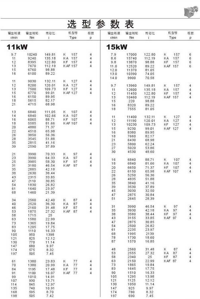 選型參數(shù)表11kW(續(xù)),15kW,