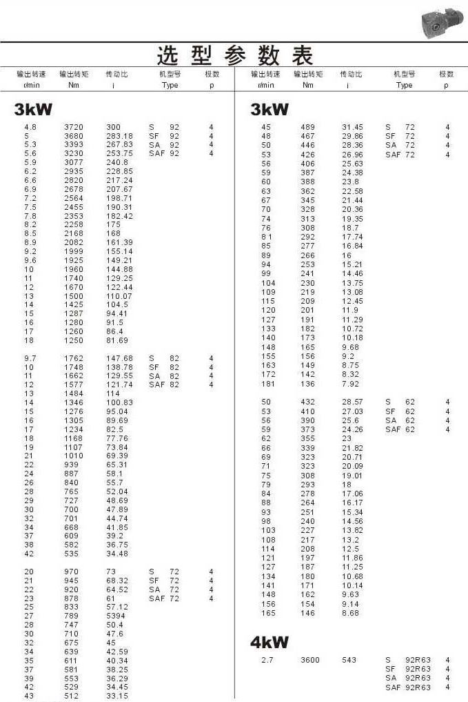 選型參數表3kW(續)和4kW